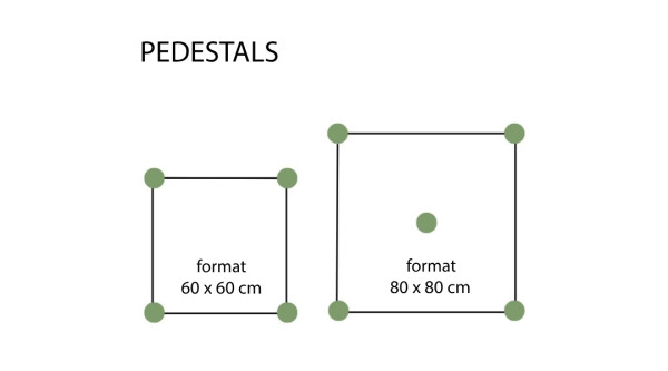 - Installation on pedestal supports or mortar bags [recommended placement of support points see adjacent diagram]